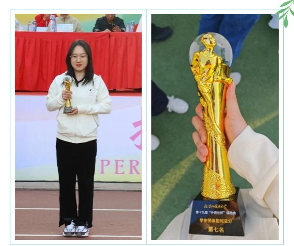 其中,2024级硕士研究生王昊斩获男子员工组100米项目第八名以及男子员工组跳远项目第六名;2024级硕士研究生滕俊洁取得女子员工组200米项目第五名。