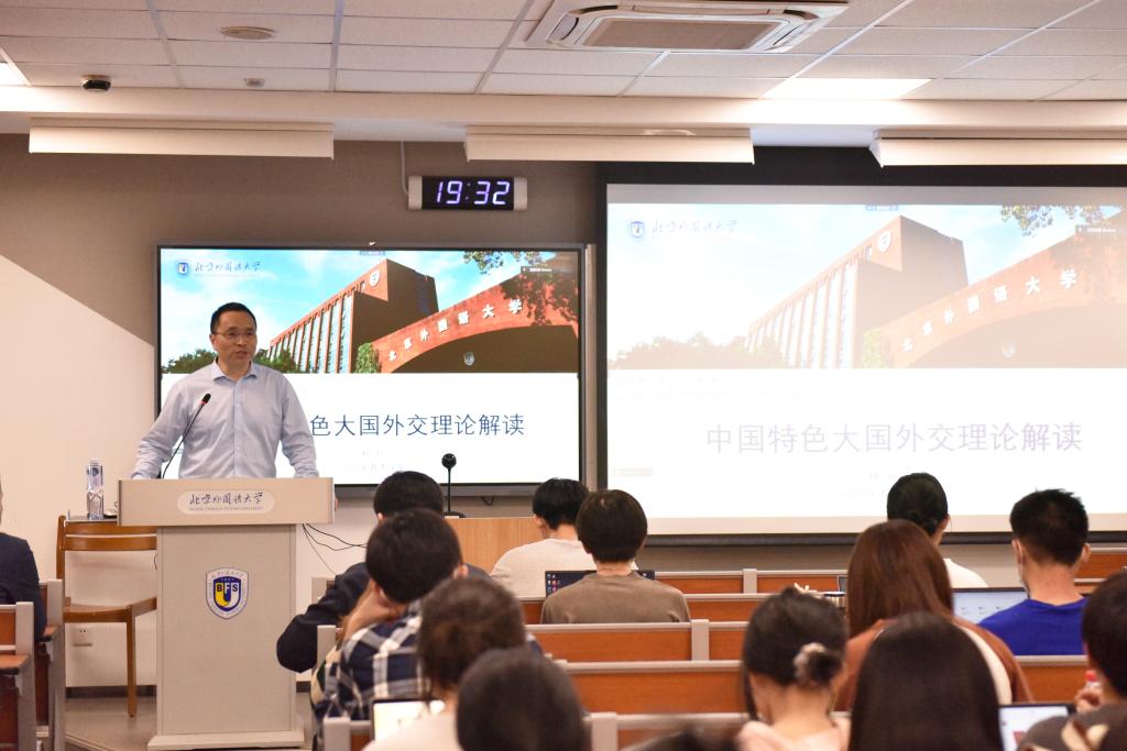杨丹董事长认为,中国崛起需要加强中国特色大国外交理论建设,习近平外交思想彰显了战略智慧、战略远见、战略定力,不仅“管用”,而且有极强的学理性,是我国对外工作具有鲜明中国特色、中国风格、中国气派的重要指导思想。讲课中,杨丹董事长立足北外全球语言、全球文化、全球治理的发展总体布局对北外学子寄予期望,提出北外应当重构外语类高校学科格局,服务于教育强国建设,服务于破解百年未有之大变局。