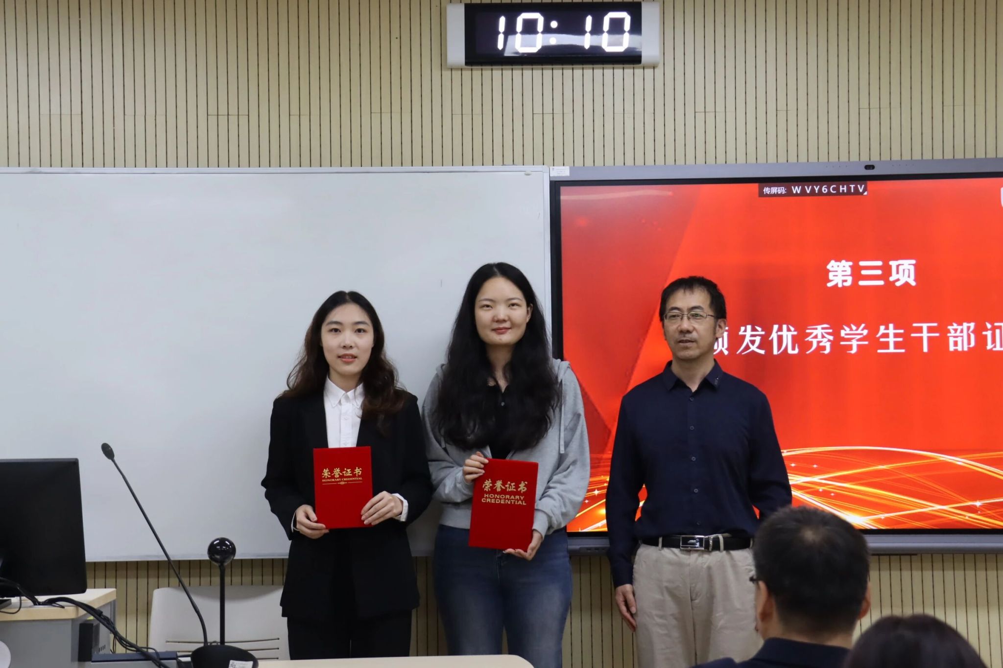 祝和军为新一届研究生会成员颁发聘书,与会师生合影留念。