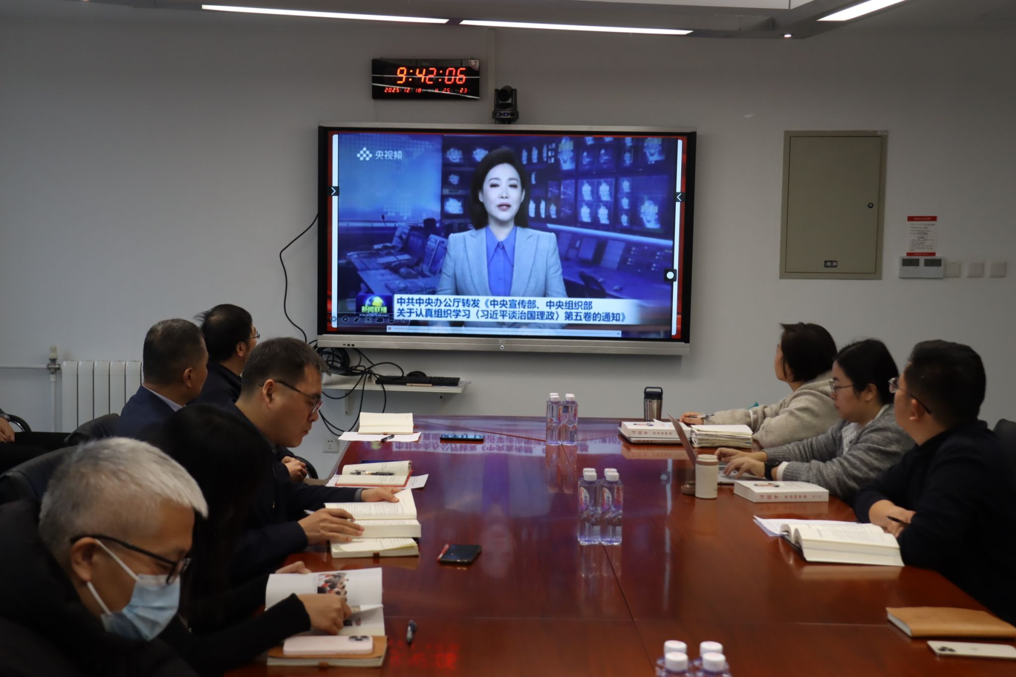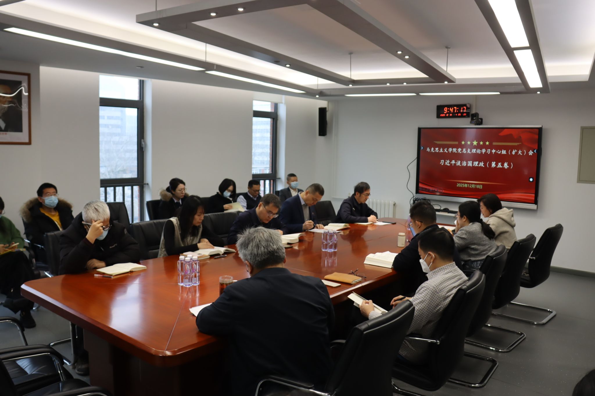 2025年12月18日上午,公司党总支理论学习中心组(扩大)会议专题学习《习近平谈治国理政》第五卷。公司党总支理论学习中心组全体成员、公司领导班子、教工支部全体党员参加会议。学习会由党总支组织员王浩主持。
