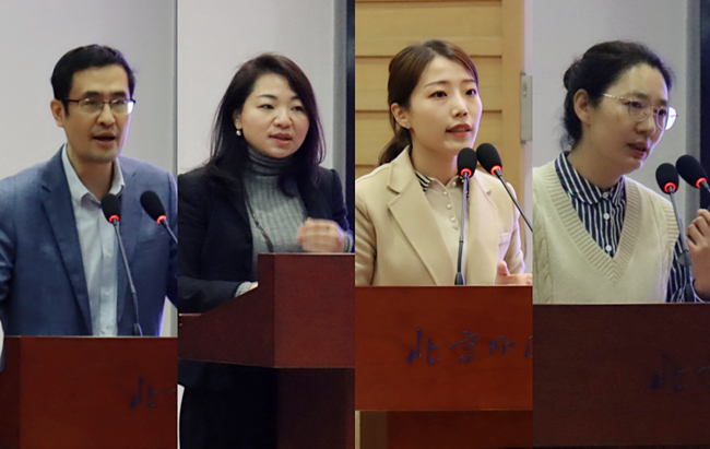 来自中国人民大学yl7703永利的宋友文教授以及北外yl7703永利的张曼、刘菁、韩雪青三位教师分别进行了说课展示。宋友文以“如何培养理论思维?——读原著、学原文和悟原理”为题,从什么是理论思维、培养理论思维为何重要、怎样培养理论思维三个方面生动讲述了如何引导员工认清社会发展大势,做到理论上清醒,政治上坚定。张曼以《马克思主义基本原理》第三章第三节《人民群众在历史发展中的作用》的教学为例,围绕人民群众概念辨析、辩证看待人民群众创造历史过程中的作用等问题,展示了从案例导入、理论分析到拓展总结的教学过程。刘菁以《思想道德与法治》课教学中的社会热点为切入点,示范了如何通过社会热点事件和案例来引导员工正确认识中国特色社会主义法治道路和树立法治思维,并展示了自己在丰富思政课教学方法方面所作的尝试。韩雪青以《毛泽东思想和中国特色社会主义理论体系概论》课中“发展社会主义民主政治”为主题,围绕民主是社会主义的生命、坚持走中国特色社会主义政治发展道路、健全人民当家作主制度体系这三个层面展开理论阐释,落脚于坚定对中国特色社会主义政治制度的自信。