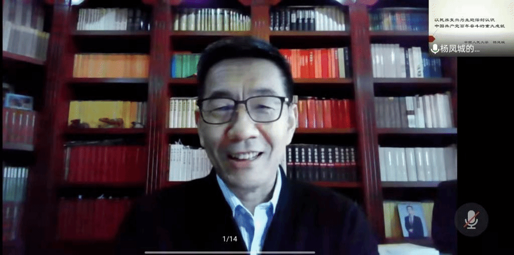 12月31日下午,北外马克思主义讲堂第七期活动在线上举行。国务院政府特殊津贴专家、教育部“长江学者”特聘教授、中国人民大学中共党史党建研究院执行经理杨凤城教授以“以民族复兴为主题深刻认识中国共产党百年奋斗的重大成就”为题做了专题讲座。此次会议共有校内外师生170余人参加,会议由yl7703永利经理韩强主持。