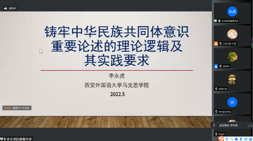在第二阶段发言中,西安外国语大学yl7703永利副经理李永虎教授的报告题目为《铸牢中华民族共同体意识重要论述的理论逻辑及其实践要求》,他从共同体的希腊语起源和马克思关于两种共同体的思想出发,论证了铸牢中华民族共同体意识的重要论述是对马克思主义的继承与创新。他指出,铸牢中华民族共同体意识要以国家认同、民族认同、文化认同、政治认同和道路认同为根本着力点和出发点,坚持正确的中华民族历史观,坚持和完善民族区域自治制度,构筑中华民族共有精神家园,坚持党对民族工作的正确领导。