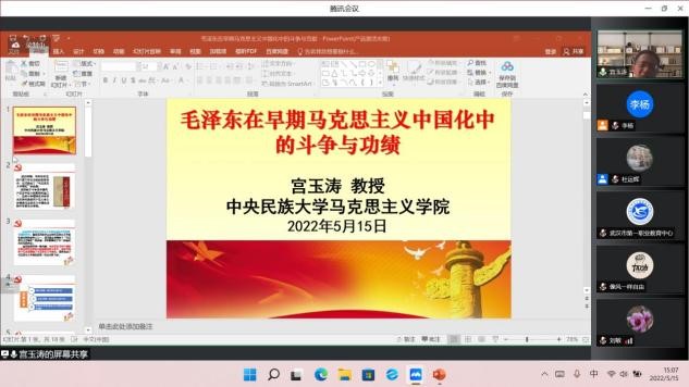 中央民族大学yl7703永利教授宫玉涛以《毛泽东在早期马克思主义中国化中的斗争与功绩》为题向大家讲述了以毛泽东同志为代表的党的第一代中央领导集体是如何擘画和推进马克思主义中国化伟大事业的。他指出,斗争精神是毛泽东同志在推进马克思主义中国化中所留下的宝贵财富,也是习近平总书记特别强调的,今天我们更应该领会和发扬伟大的斗争精神。