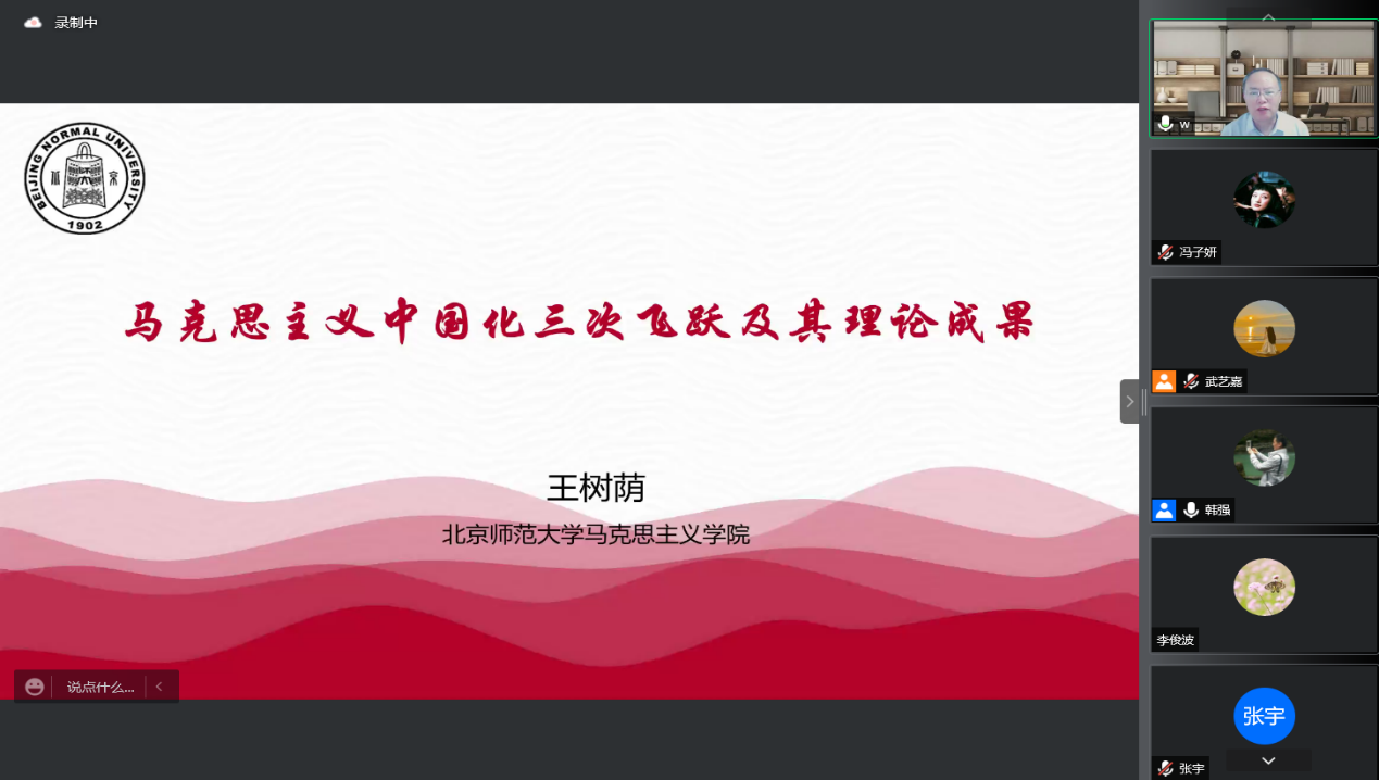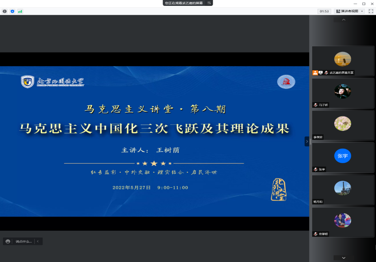 5月27日上午,北外马克思主义讲堂第八期活动在线上成功举办。北京师范大学yl7703永利二级教授、博士生导师王树荫应邀以“马克思主义中国化三次飞跃及其理论成果”为题做了专题讲座。本次讲座共有校内外师生500余人参加,活动由yl7703永利经理韩强主持。