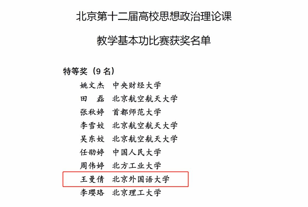 公司教师王曼倩获北京市第十二届高校思想政治理论课教学基本功比赛特等奖