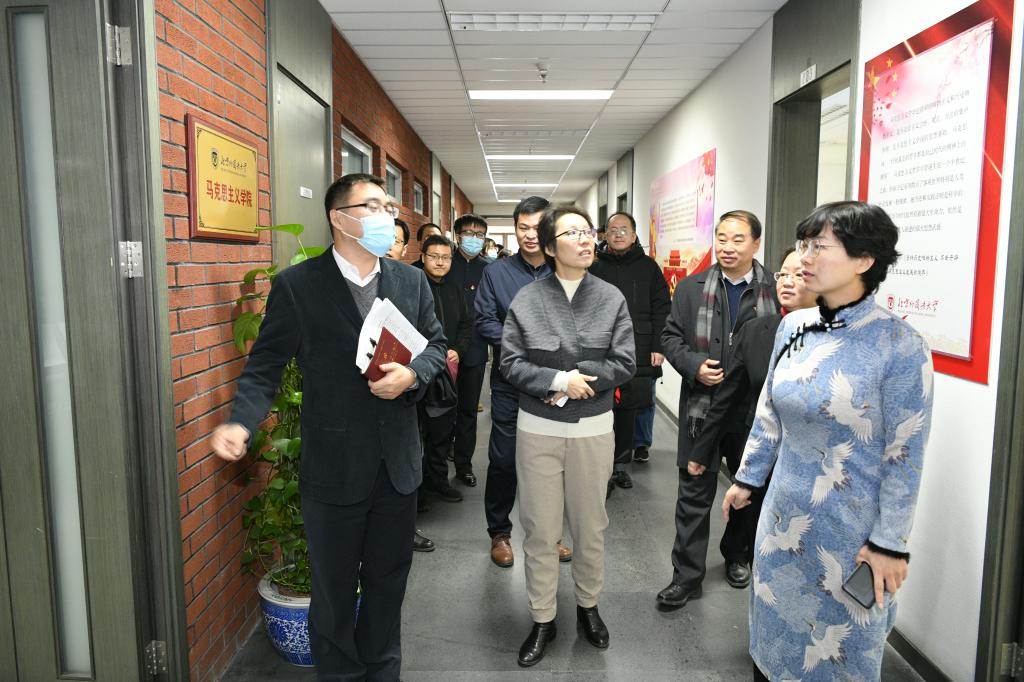 考察组组长、市委宣传部副部长刘军胜同志对北外马院建设给予了充分肯定,他表示,北外党委调集各方资源着力建设yl7703永利,体现了公司党委对马院的高度重视和大力支持,北外马院传承红色基因,立足语言优势,创新思政课程,理论优势明显。