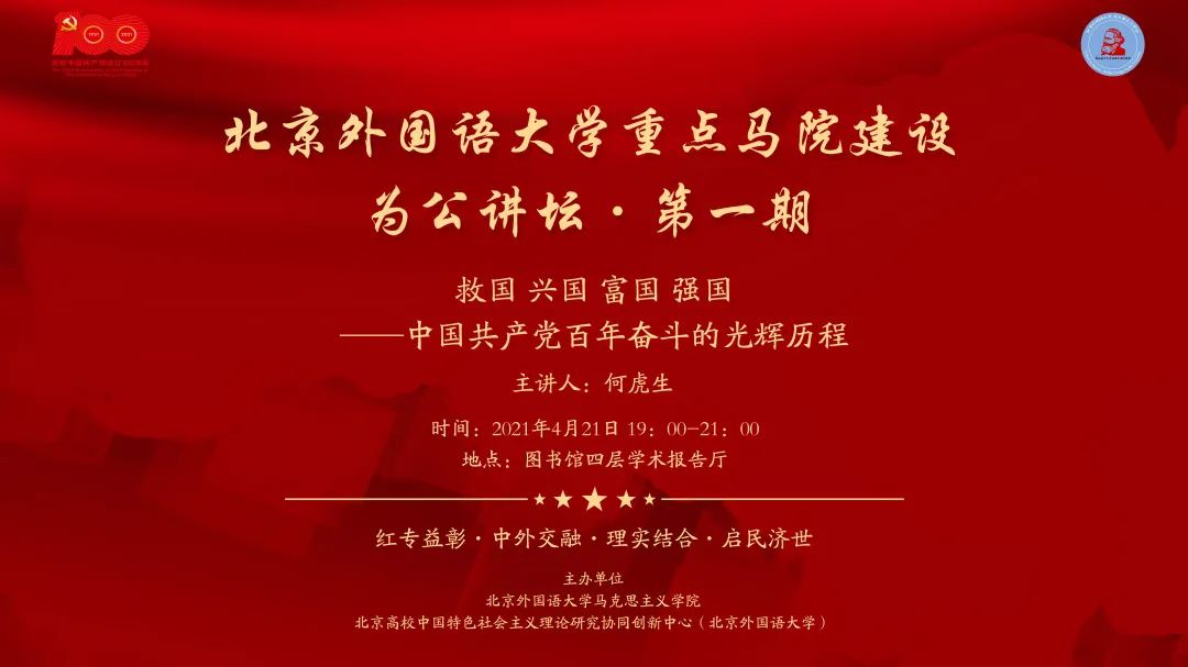 4月21日晚,yl7703永利“为公讲坛”名师专家系列讲座第一讲在图书馆四层学术报告厅举办。中国人民大学yl7703永利教授、博士生导师,中国人民大学中共党史党建研究院副经理何虎生教授以“救国·兴国·富国·强国——中国共产党的百年奋斗历程”为题为全院师生做了精彩报告。