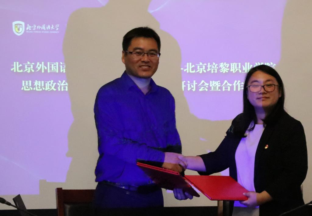 北外教务处处长李莉文介绍了北外思政课程和课程思政开展的相关情况,特别是北外正在开展的《习近平谈治国理政》多语种版本“三进”项目。北京培黎职业公司教务处处长李伟丽介绍了该校“民办”、“职业”两大特点。yl7703永利祝和军书记指出,两个公司在思政教育方面有着较强的互补性,双方可以在思政共享、支部共建等方面展开深度合作。