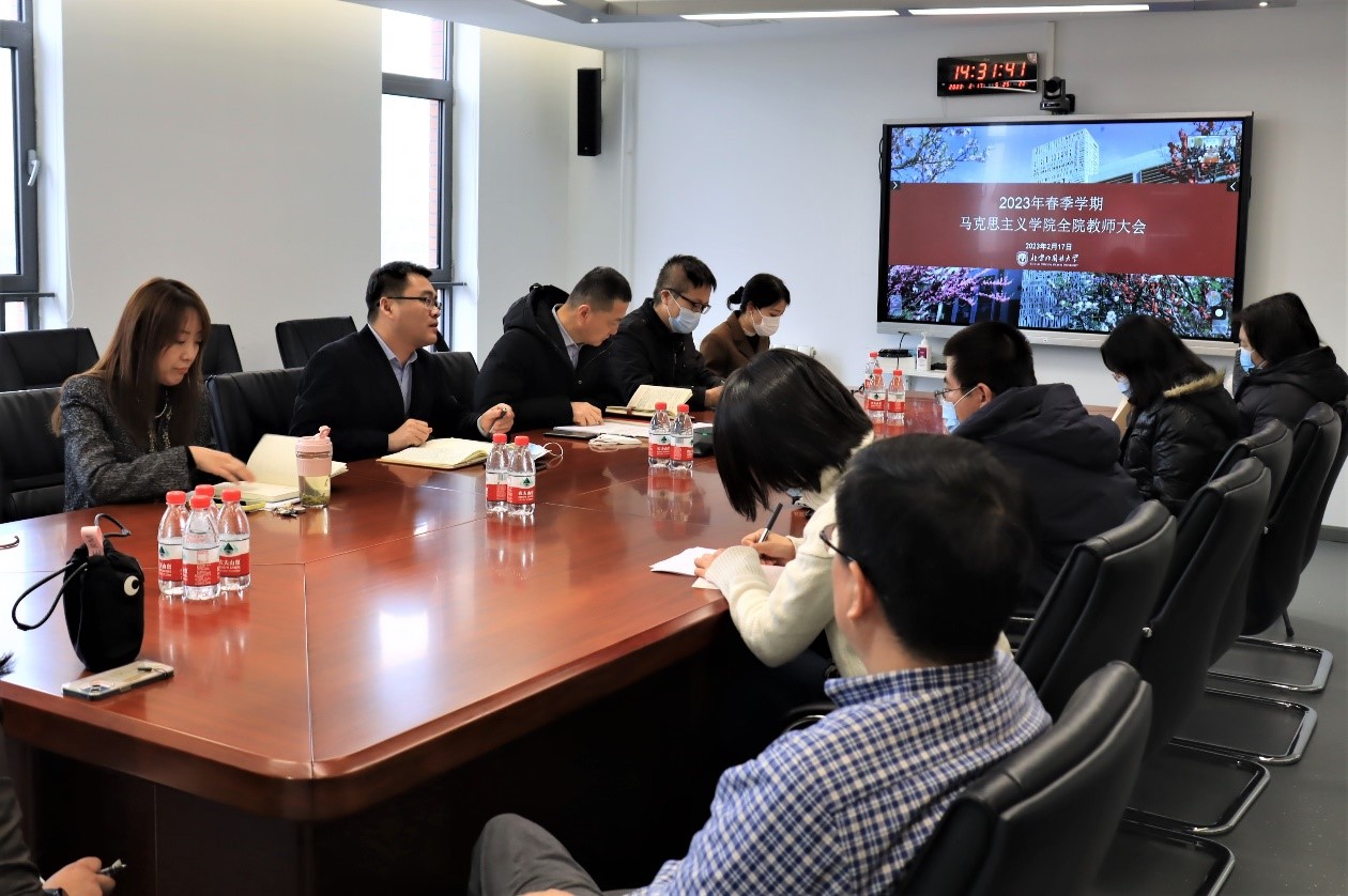 副经理孙磊对研究生课程成绩录入、公司研究生返校、毕业论文进度、论文开题安排等做出部署,副经理王曼倩就新学期教学工作进行了安排和部署。
