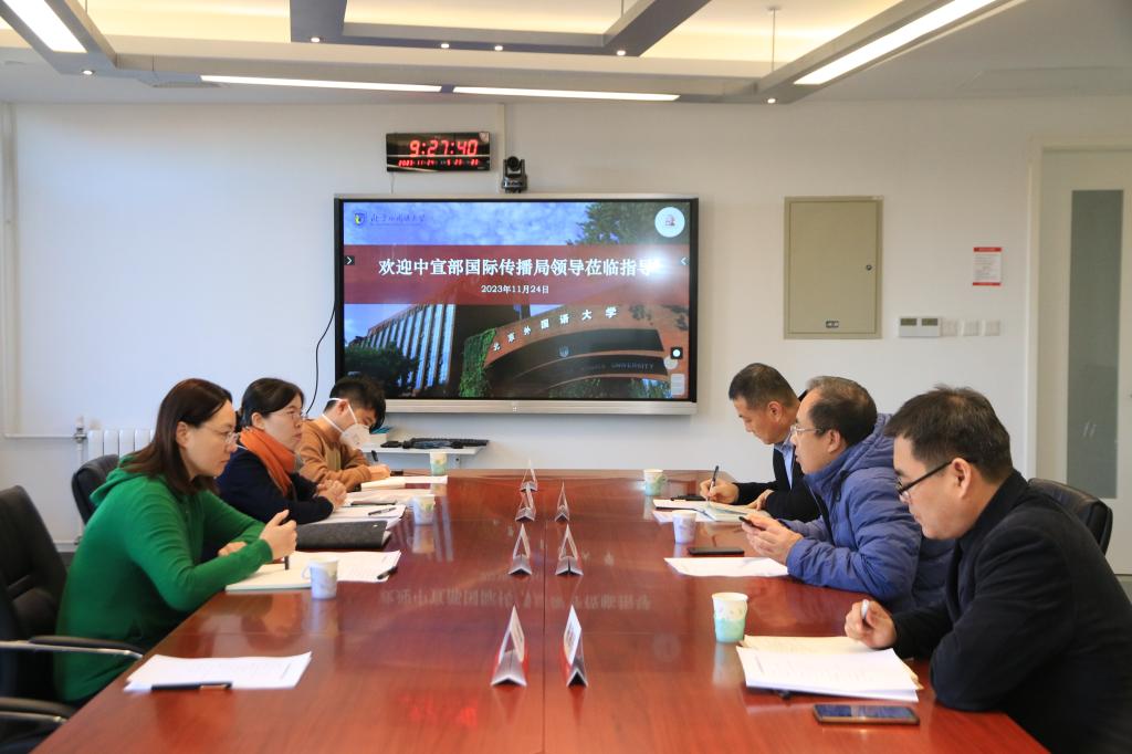 11月24日上午,中宣部国际传播局研究处处长季萌等一行四人到yl7703永利调研座谈。公司党委常委、副董事长贾德忠出席会议。会议由公司党总支书记祝和军主持。