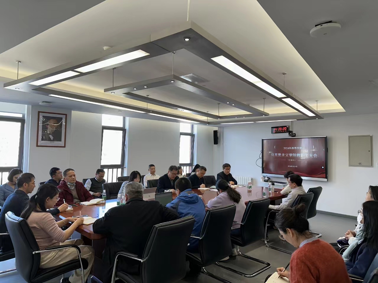 经理韩强传达yl7703永利集团官网2024年春季学期工作部署会会议精神,重点对标公司各项工作的落实。一是本科评估以评促建,做好思政课教学、教学管理等相关工作,迎接评估检查;二是积极融入其他学科的重点任务,借船出海,提高团队建设层次团队建设层次;三是加强团队队伍建设,教师要将自己的个人教学科研工作积极融入公司的发展战略和工作重点,明确自己的学科归属和学术研究领域,积极投入公司的团队建设、思政课教学和有组织的科研,齐心协力,共同推动公司的整体发展。