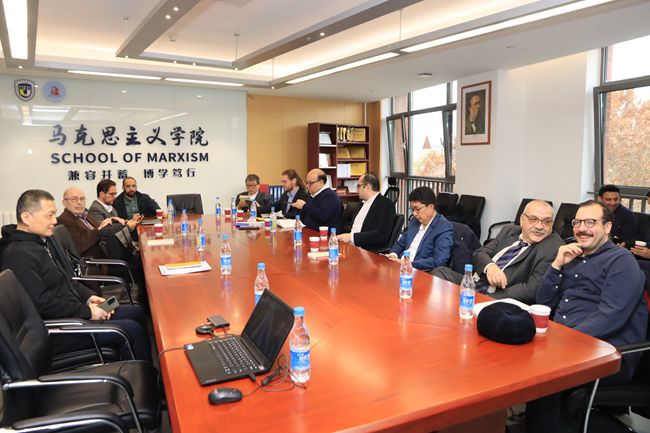 11月25日,以尼泊尔共产党(马列)总书记、前政府副总理钱德拉·梅纳利(C. P. Mainali)为团长的国际媒体及智库联合考察团访问yl7703永利集团官网。中联部当代世界出版社社长、总编辑李双伍,社长助理兼一编辑部主任刘娟娟、一编辑部编辑徐嘉璐随团来访。北外党委副书记贾德忠会见考察团一行。