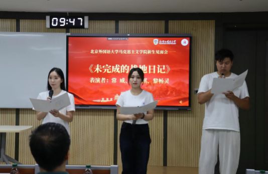 会议最后,同学们以一场精彩的诗歌朗诵为本次见面会画上句点。至此,新生见面会圆满结束。新的阶段已经开启,新的篇章已然翻开,相信这场见面会不仅为新生们搭建了了解北外马院的桥梁,让大家读懂公司的学术追求与育人初心,更让同学们在互动中感受到学术气息与人文关怀。相信2025级新生定会以青春为帆、理想为舵,不辜负心中热爱和时代重托,勤勉钻研,向着未来扬帆起航!