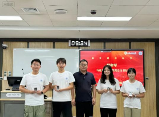 祝和军在对新生表示欢迎的同时也为他们敲响警钟,他提醒大家要明确自身的第一身份是员工,第一要务是学习。他从三方面勉励新生:一要拓展视野与格局,理解马克思主义对人类命运的关怀,铭记马克思为人类解放事业奋斗的追求;二需牢记求学初心,务必认真读书、潜心治学,警惕“空混文凭”的浮躁心态;三要学好用好马克思主义,运用马克思主义的立场、观点和方法分析时代变局、把握发展大势,用科学理论指导实践。随后,他为新生赠书并合影留念。