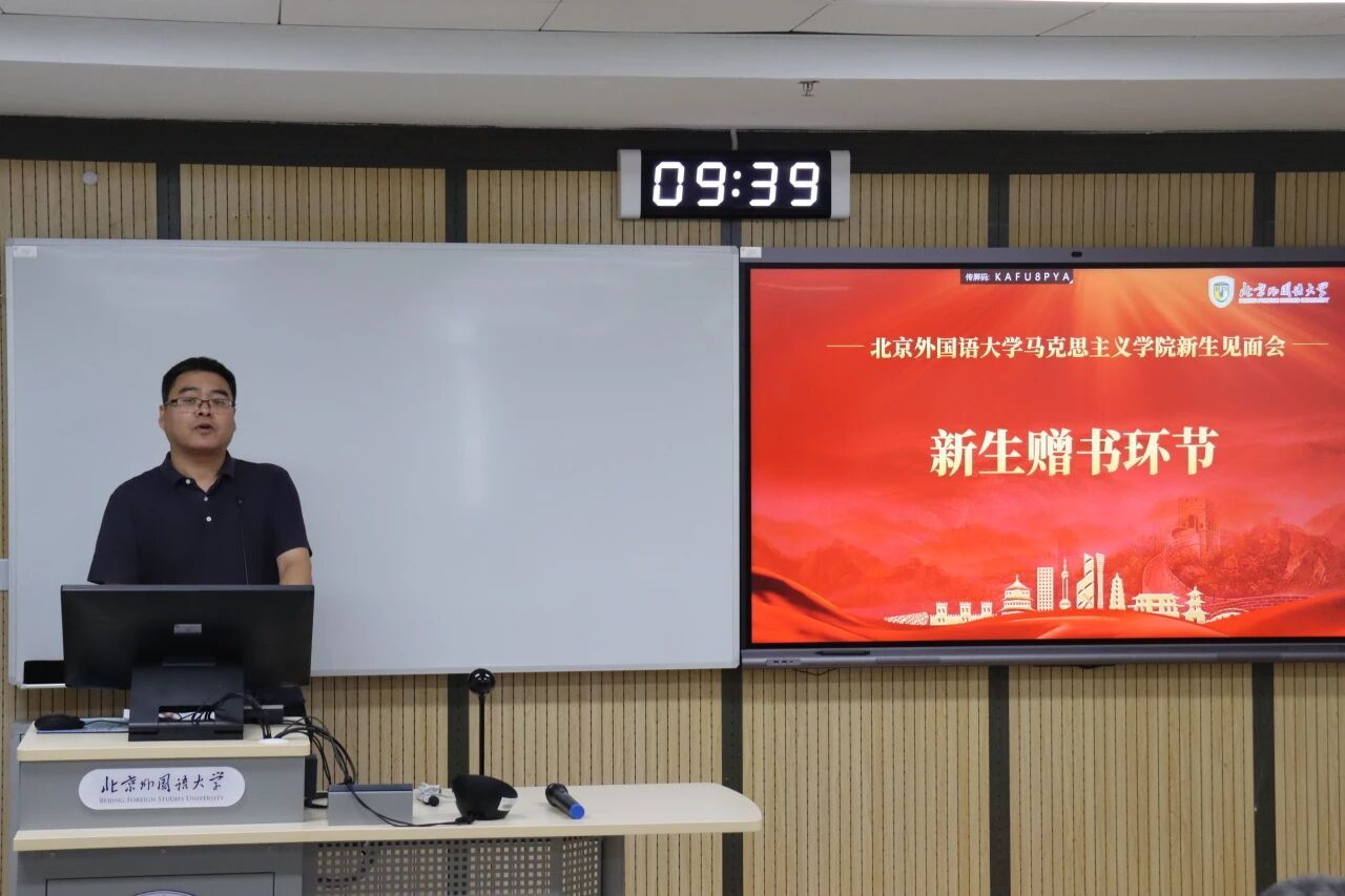 9月2日,北外马院2025级新生见面会成功举办。马公司党总支书记祝和军,经理韩强,副经理孙磊,副经理王曼倩,党总支组织员王浩、辅导员刘珊珊以及部分导师代表和全体马院研究生参加见面会。