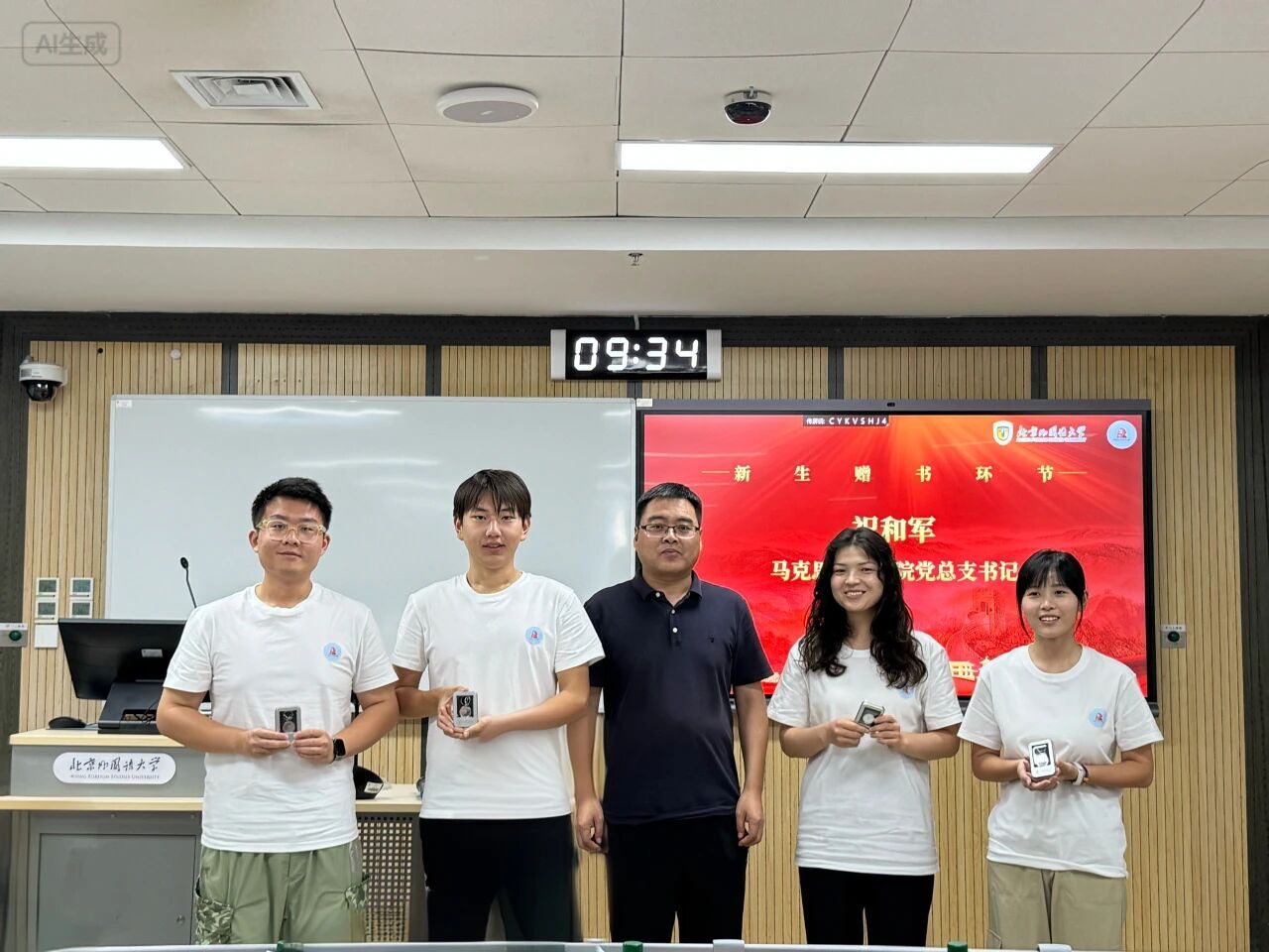 祝和军在对新生表示欢迎,他勉励新生一要拓展视野与格局,理解马克思主义对人类命运的关怀,铭记马克思为人类解放事业奋斗的追求;二需牢记求学初心,务必认真读书、潜心治学,警惕“空混文凭”的浮躁心态;三要学好用好马克思主义,运用马克思主义的立场、观点和方法分析时代变局、把握发展大势,用科学理论指导实践。他提醒大家要明确自身的第一身份是员工,第一要务是学习。随后,他为新生赠书并合影留念。