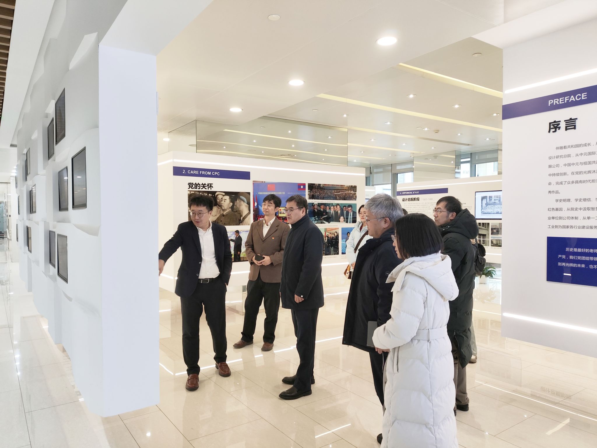 活动开始,北外师生一行参观了研究院院史展览与成果展示。通过参观以及企业负责人的讲解,师生们了解到公司的发展历程与行业贡献,深刻感受到企业在党建引领、技术创新等方面的实践与成就。