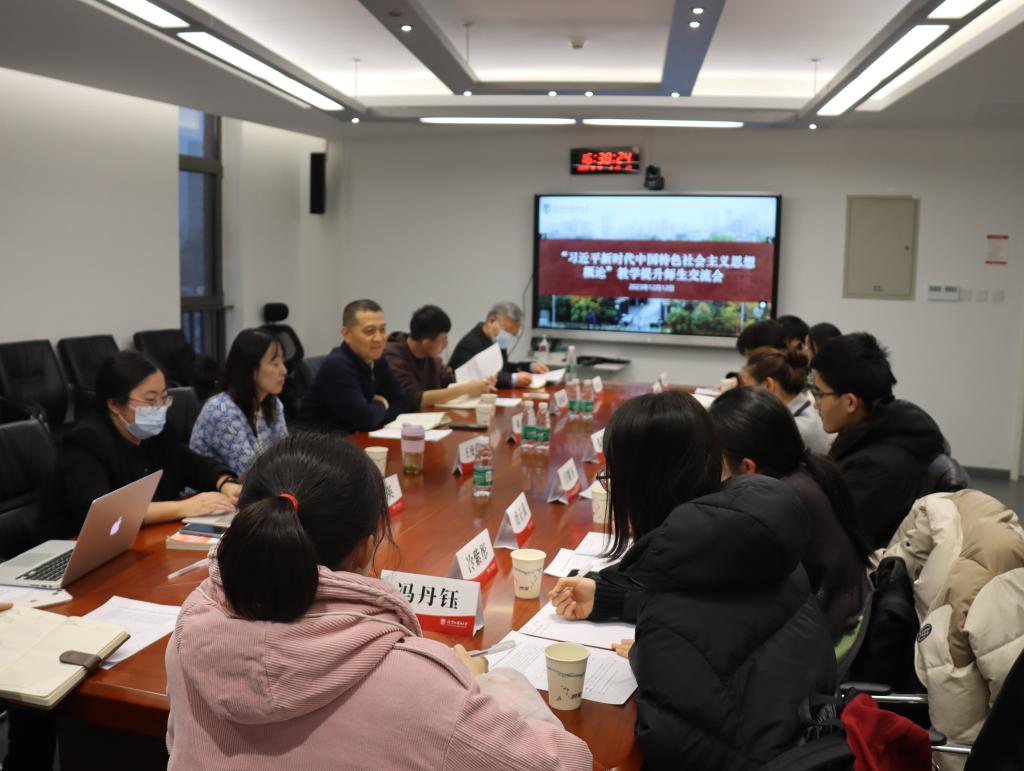 在座谈中,同学们畅所欲言,分别从阅读马克思主义经典著作、拓宽中西对比的学术视野、以适当的课程难度激发学习兴趣、进一步加强课堂管理等方面,对开好学好“习近平新时代中国特色社会主义思想概论”课提出了意见建议。教师代表尚会永、周英、梁爽从教材体系向教学体系转化、经典著作、党的文献同教材的关系、宽广中西学术视野和深邃理论史视野的结合、学术研究方法论和日常教学内容的内在联系、教学内容和教学形式的辩证关系等方面,与同学们进行了深入交流。信息技术中心教师赵成涛汇报了公司用现代化教学技术手段为“习近平新时代中国特色社会主义思想概论”课提供有力支持的具体措施。