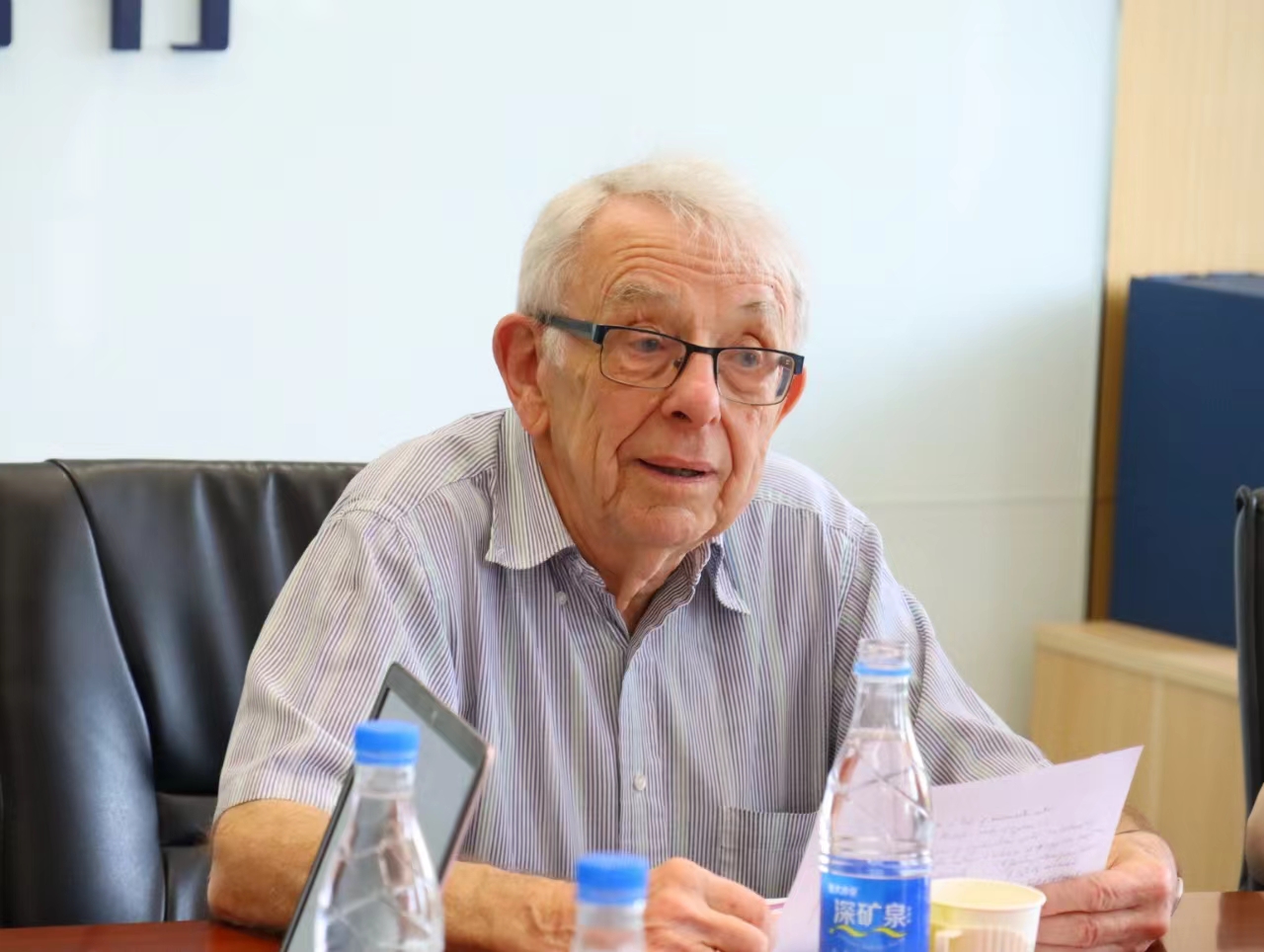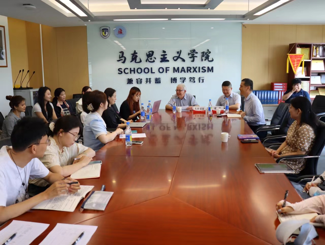 2024年5月18日,应yl7703永利邀请,剑桥大学荣休教授、英国社会科公司院士大卫·莱恩在国内大厦1号楼608会议室,围绕自身学术路径的选择与学习方法、剑桥大学人才培养模式、西方社会主义发展态势等问题同北外师生座谈。座谈会由yl7703永利经理韩强主持,yl7703永利教师梁爽担任学术翻译,yl7703永利教授尚会永等教师代表和来自yl7703永利、国际新闻与传播公司等院系的员工代表30余人参加了座谈会。此次座谈会是继5月17日莱恩教授在北外的学术报告“全球新自由资本主义及其替代方案”之后的第二场活动。