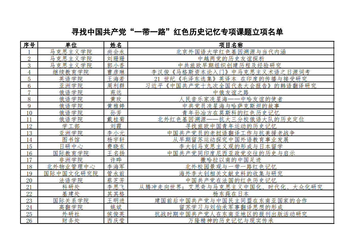 公司三名教师入选寻找中国共产党“一带一路”红色历史记忆专项课题立项名单
