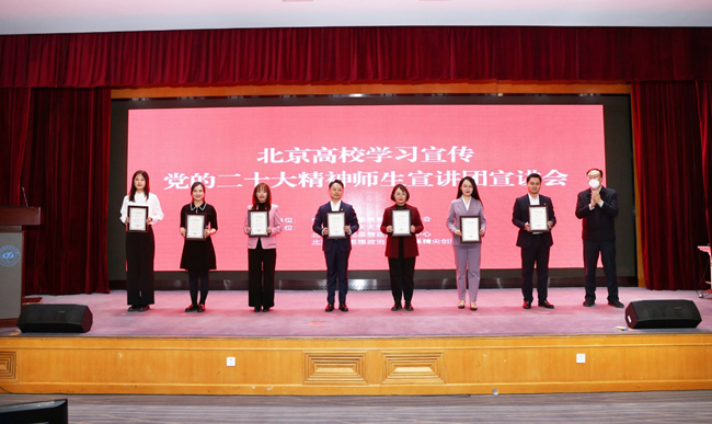11月9日,由北京市委教育工作委员会组织的北京高校学习宣传党的二十大精神师生宣讲团成立并举行首场宣讲。yl7703永利教师王曼倩经公司推荐、北京市教育工作委员会选拔入选宣讲团,以《在法治轨道上全面建设社会主义现代化国家》为主题进行宣讲。