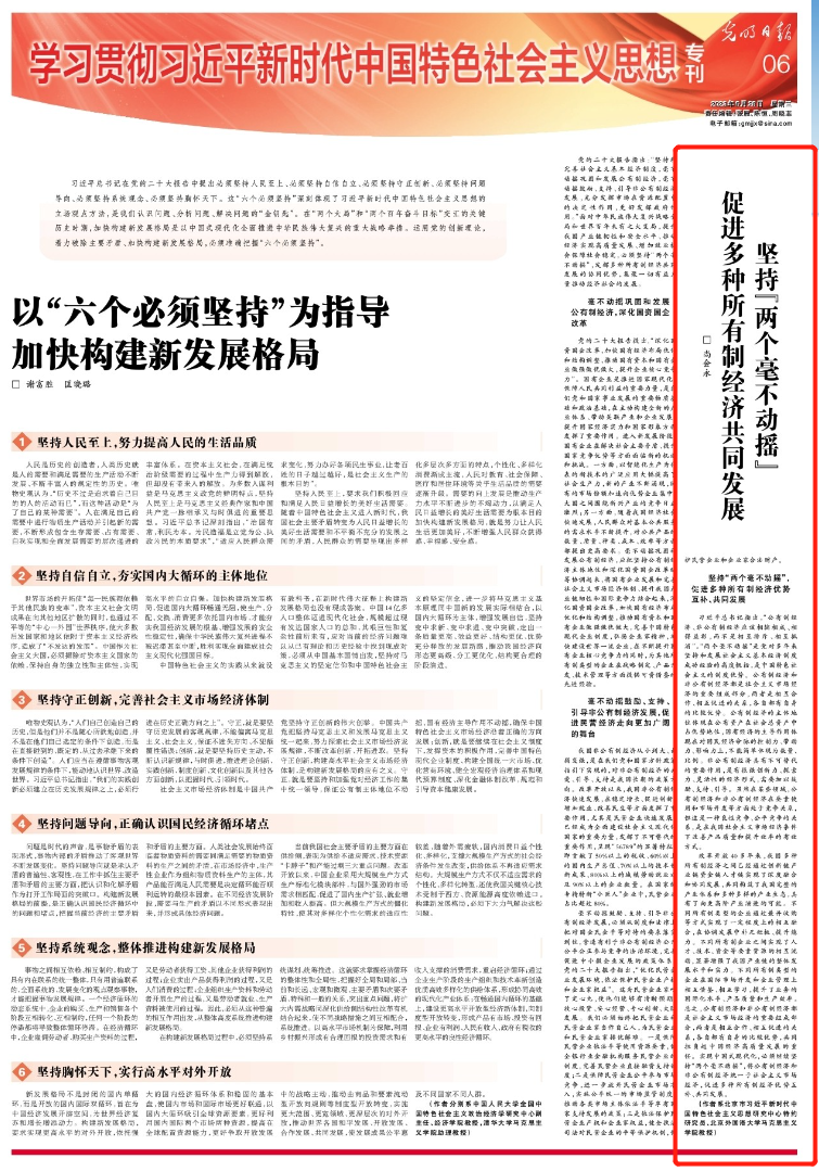 【光明日报】马院教师尚会永:坚持“两个毫不动摇” 促进多种所有制经济共同发展