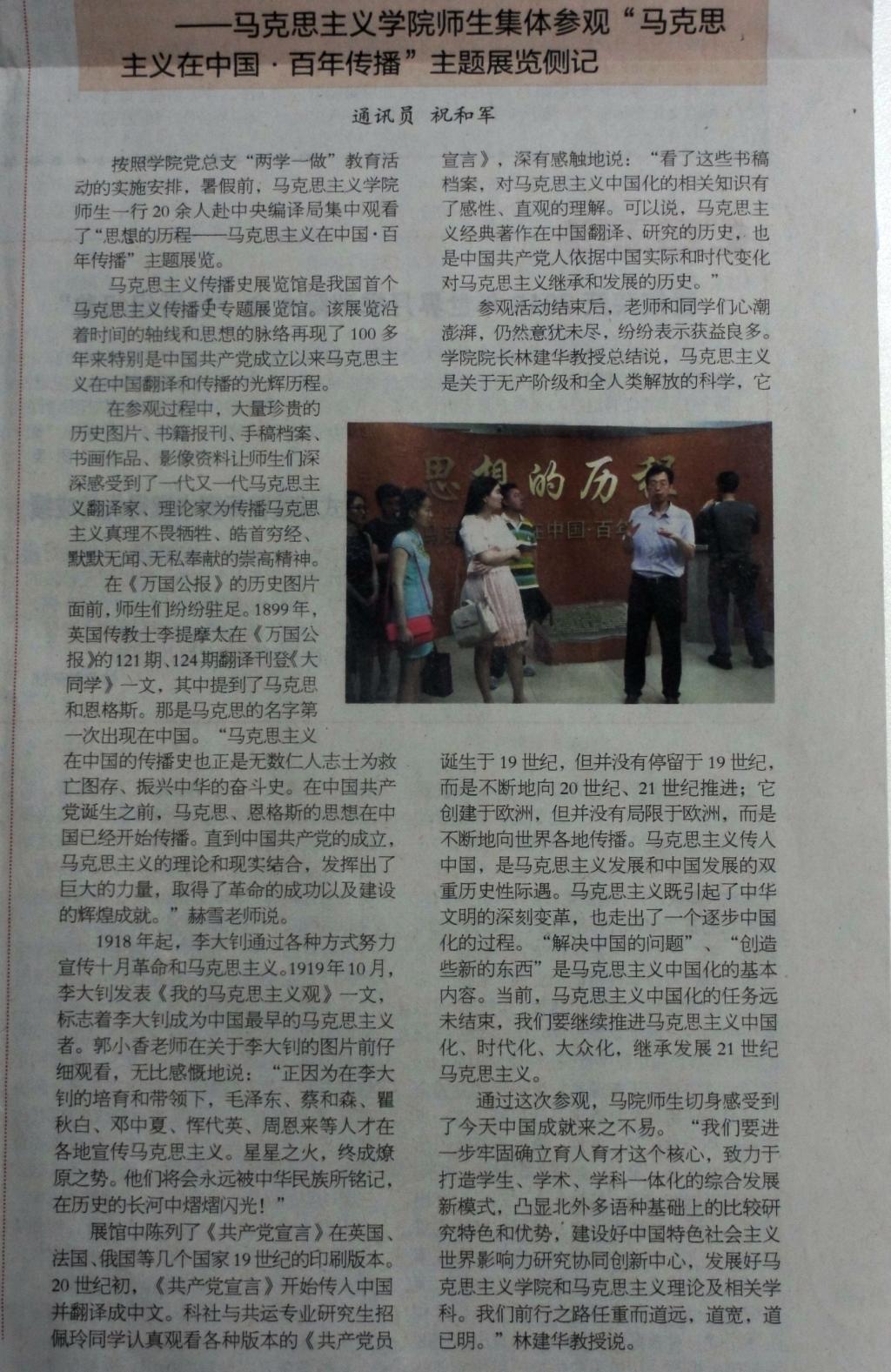 近日,《yl7703永利集团官网校报》暑期专版以“任重而道远,道宽道已明”为题重点介绍了yl7703永利在“两学一做”学习教育中参观“马克思主义在中国·百年传播”活动。以下是报道全文: